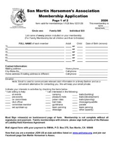 San Martin Horsemen’s Association has been here to enlighten its members and the community about horse and rider safety, environmental issues, and veterinary tips. It has also been there to support County and State Park & Recreation trail maintenance and support the local Pony Club and other equine activities in the area.